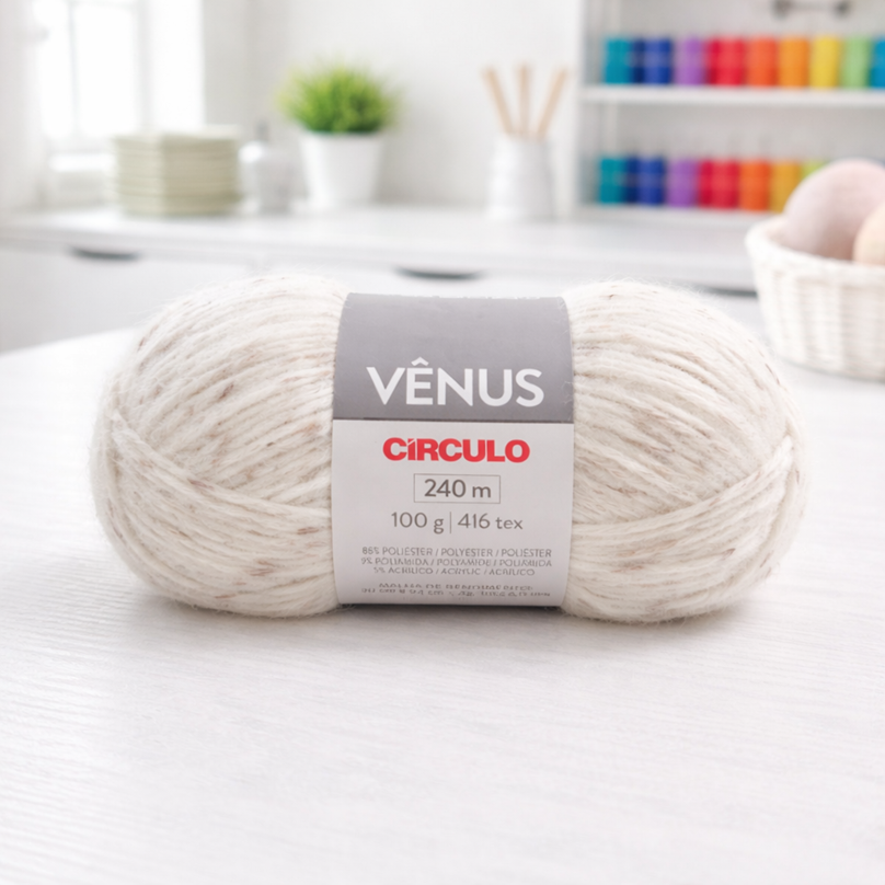 Sabe quando você pega o fio e já imagina uma peça quentinha e elegante? É exatamente essa sensação que o Vênus transmite. Ele tem um acabamento levemente peludinho que dá um charme todo especial ao trabalho, além de um toque extremamente macio que faz a diferença no resultado. Eu gosto muito da proposta dele, porque une aconchego e sofisticação em um só fio, com um caimento lindo que valoriza bastante peças de outono e inverno.