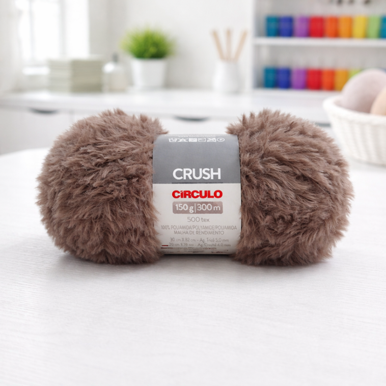 O fio Crush é um superlançamento da coleção Diferenciados este ano. Moderno, diferente e bem voltado para quem gosta de peças com personalidade. Ele tem esse pelinho mais curtinho, não tão volumoso, mas o suficiente para dar textura e deixar o trabalho com um visual mais atual. Não é um fio que eu chamaria de “clássico”. Ele puxa mais para o lado da moda, o tipo de novelo que a gente escolhe quando quer sair do básico e criar algo com mais estilo, na pegada das tendências.
