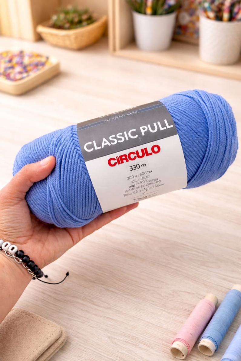 Entre os fios da Círculo, o Classic Pull se destaca como uma das opções mais versáteis e utilizadas. Sua combinação equilibrada de cores valoriza os pontos do tricô, enquanto a espessura proporciona liberdade para a execução de diferentes tipos de projetos. Com um formato mais robusto em relação a outros fios, ele apresenta 606 tex, 330 metros e novelos de 200 gramas, garantindo excelente rendimento. Trabalhado com agulhas de 6 mm, oferece uma experiência confortável, com ótimo desenvolvimento das carreiras, sendo ideal tanto para iniciantes quanto para tricoteiros mais experientes.
