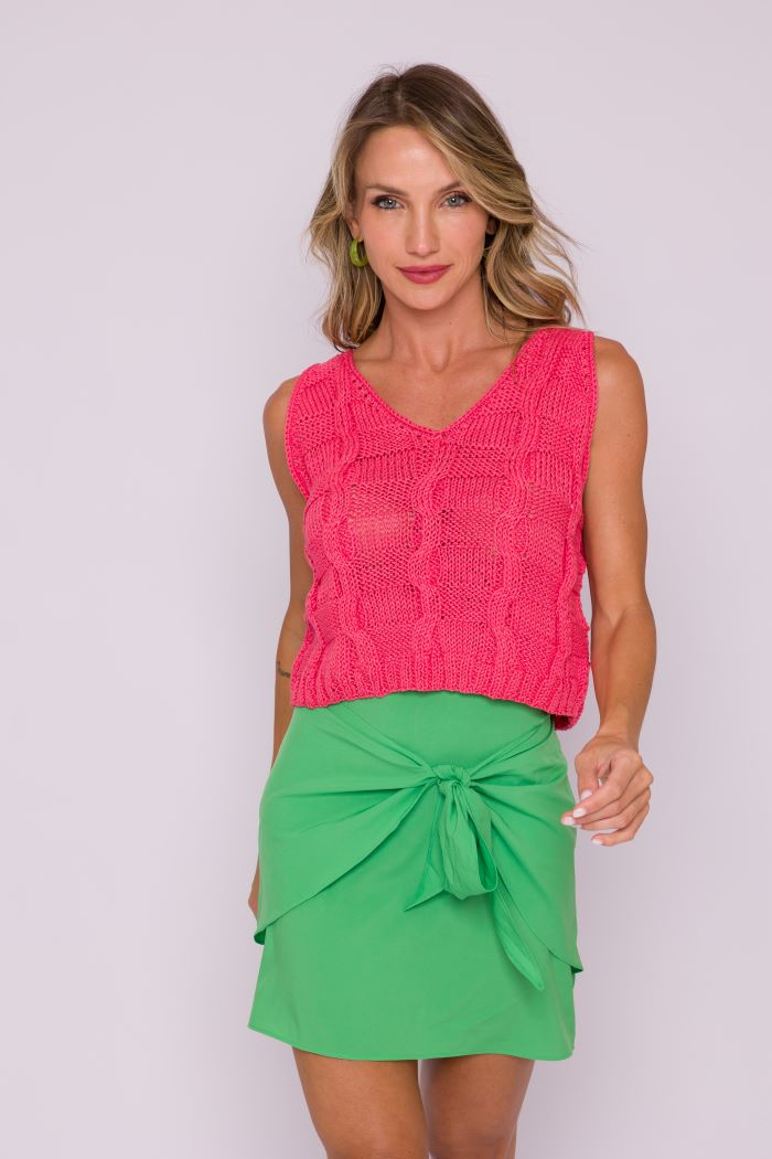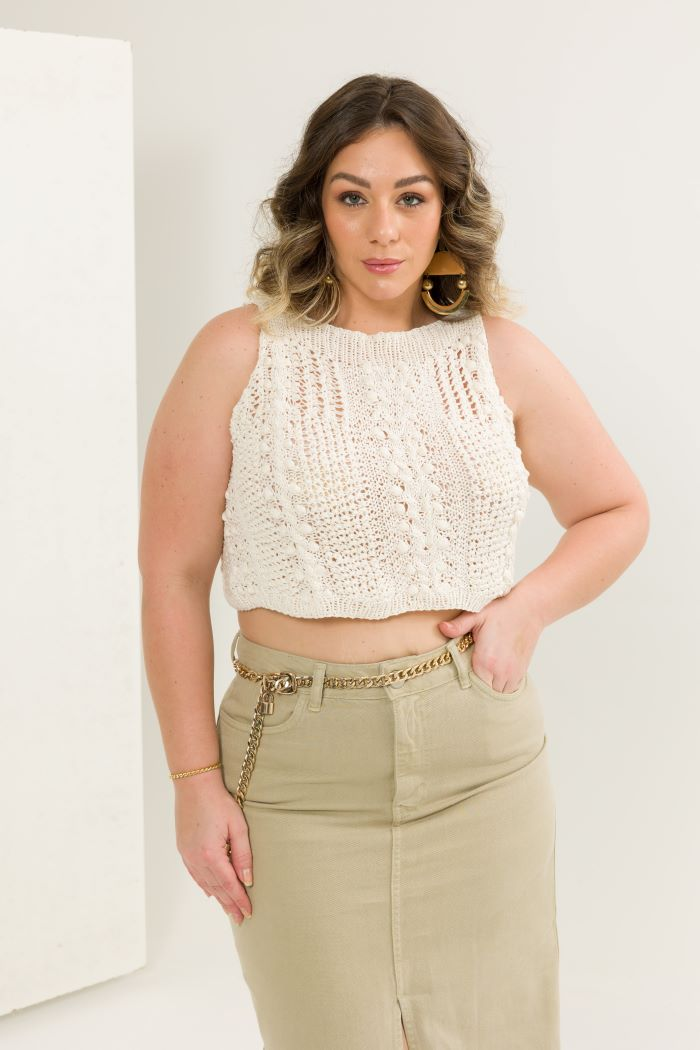Tricô também é a cara do verão, viu? Basta escolher os fios certos e deixar os pontos trabalharem a favor da leveza. As peças ganham um caimento suave, um toque macio e aquela textura que transforma qualquer look básico em algo especial.